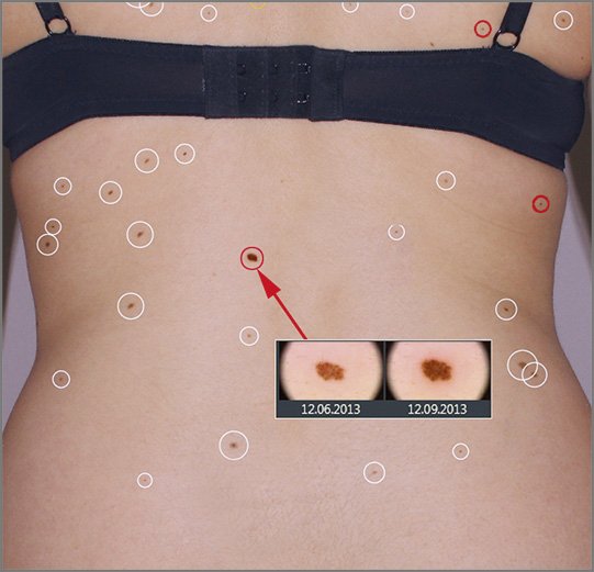 Consiste no registro evolutivo das lesões de pele individualmente com aumento (zoom) de até 140 vezes, permitindo a identificação de critérios indicativos de malignidade não visíveis a olho nu e a detecção de modificações sutis das lesões.